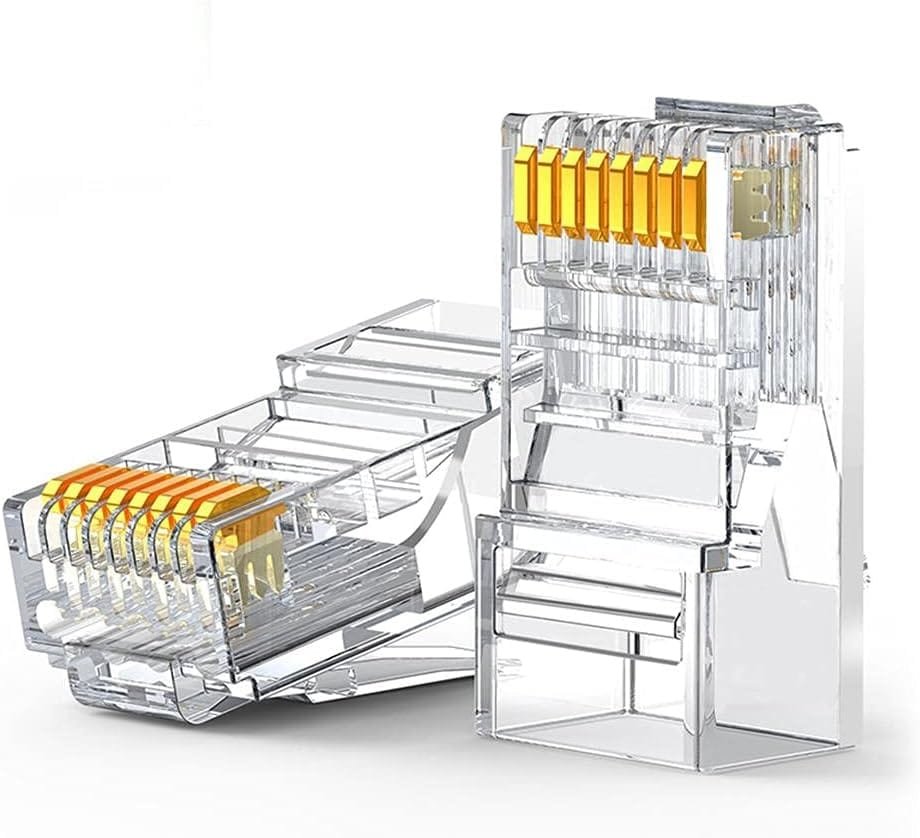 RJ45 network cable crimping head Compatible: RJ45 cat6, cat6e Material: Pure copper crimping pin, 24K gold plated High-quality transparent plastic shell, anti-breakage, anti-breakage 1 box/100 pieces.